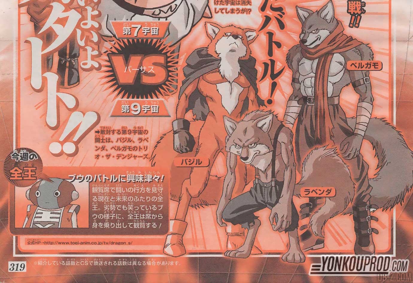 Sinopsis : Una batalla contra el universo 9 !? Majin Boo comienza la primera ronda !! Un primer encuentro organizado por el Rey Supremo se lleva a cabo como paso previo al "Torneo de la eliminación". El combate está finalmente a punto de comenzar! El primer representante del Universo 7 es Majin Boo !! Sin embargo, albahaca combatiente del Universo 9 es también un poderoso oponente ...?